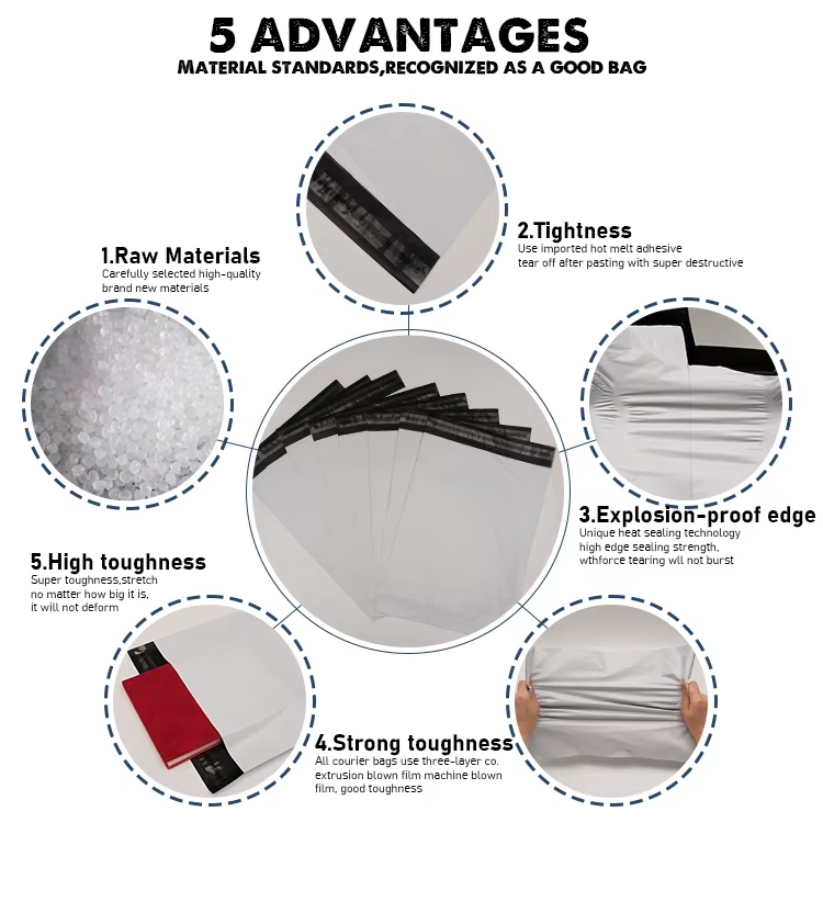 DerPE-Poly-Mailervon Zeal X besteht aus hochwertigem, recycelbarem Polyethylen (PE)-Material, das ungiftig, geruchlos und wasserdicht ist. Jeder Beutel ist sorgfältig entworfen, um die Produkte während des Transports zu schützen und gleichzeitig den Abfall zu minimieren. Seine reißfeste und feuchtigkeitsbeständige Struktur sorgt dafür, dass Ihre Waren sicher und professionell ankommen. Dies macht es zur idealen Verpackungswahl für Bekleidungsmarken, Online-Händler und Logistikunternehmen weltweit.
