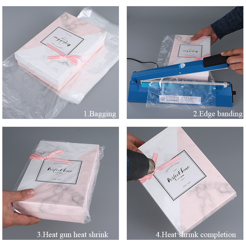 Anwendung: Schrumpffolienrolle, geeignet zum Verpacken von Kleidung, Bettwäsche, Schrumpfpuzzles, Schreibwaren, Büchern, Bilderrahmen, Seifenherstellungszubehör, Badebomben, Ölflaschen, CD-DVD-Hüllen, Geschenken, Kerzen, Kosmetika, Schuhen, Weinflaschen, kleinen Geschenkkörben, Heimwerkerarbeiten usw.